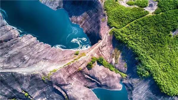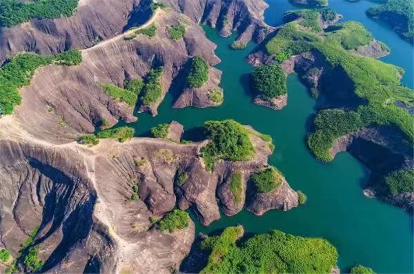 其最大的特点就是丹霞地貌周边有漂亮的水洼点缀,红岩绿水、险寨奇涧,美得一塌糊涂。