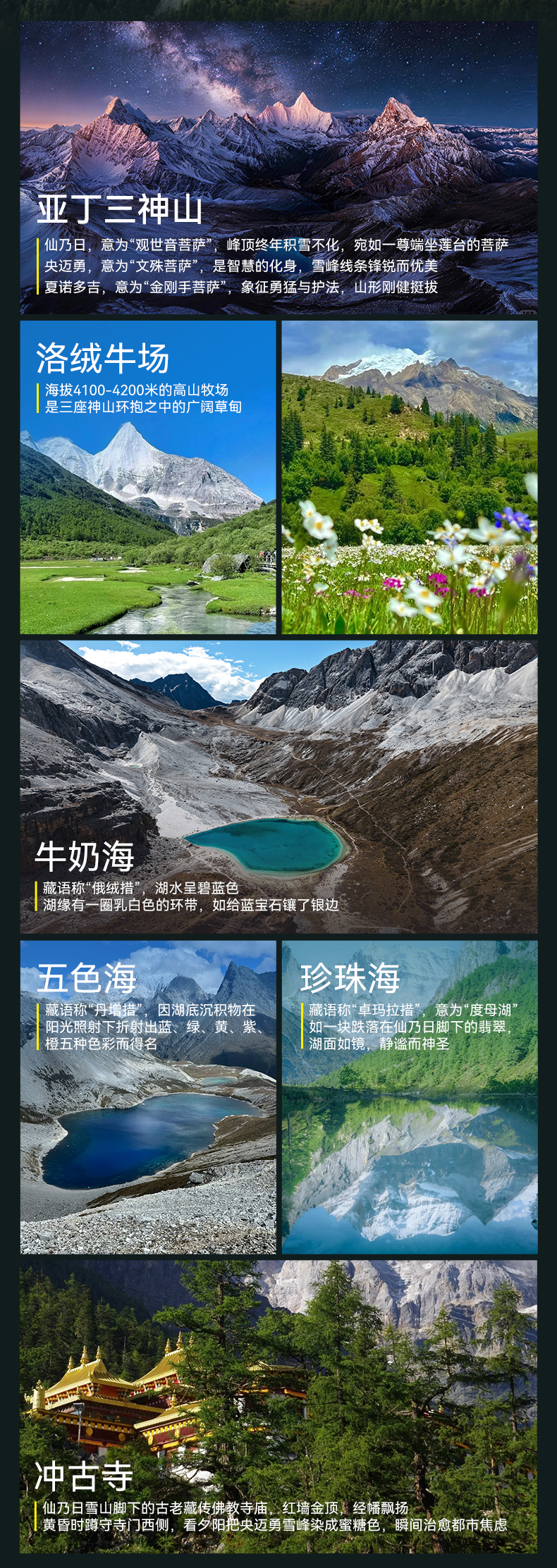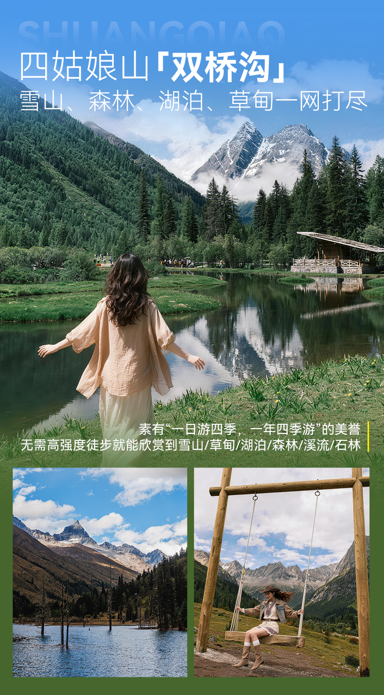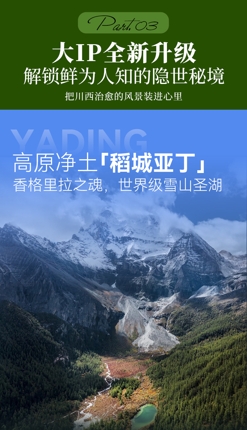 ● 门票:四姑娘山双桥沟门票、墨石公园门票、亚丁景区门票、木雅大寺门票。