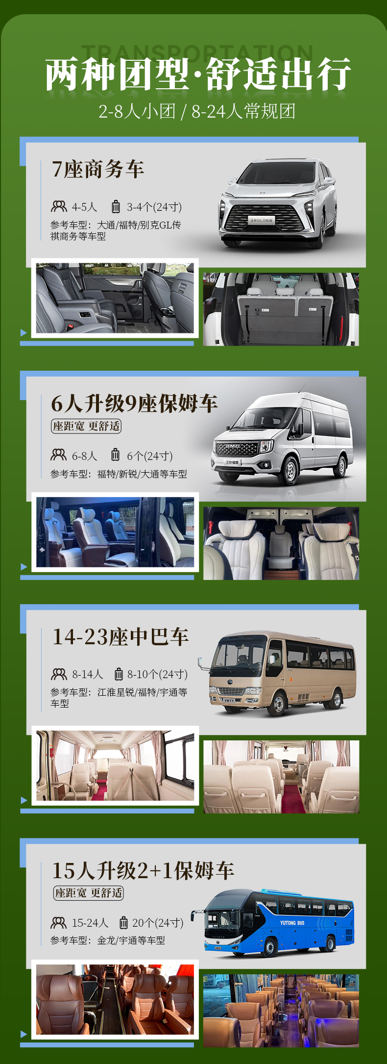 ②2-8人半自由小团:由司机提供向导服务,司机不进景区。
