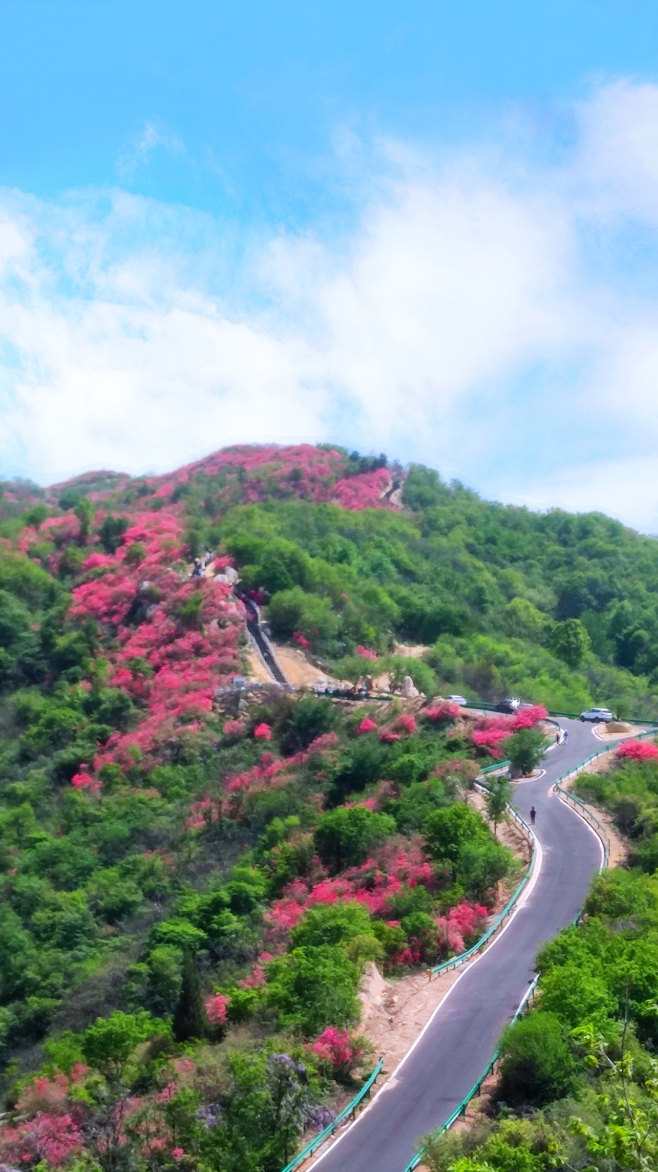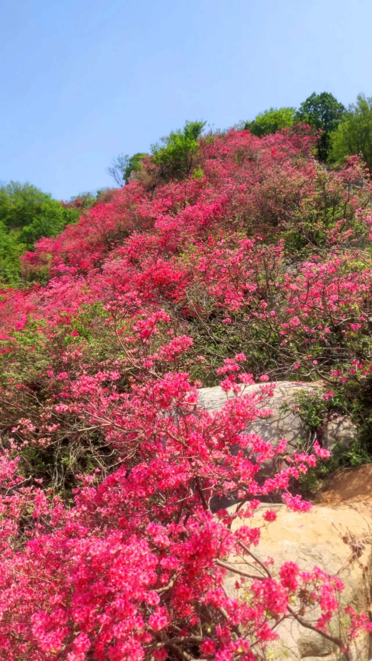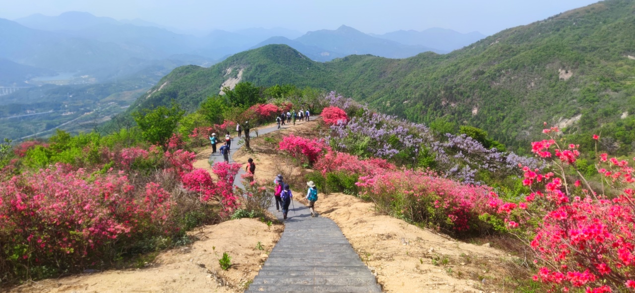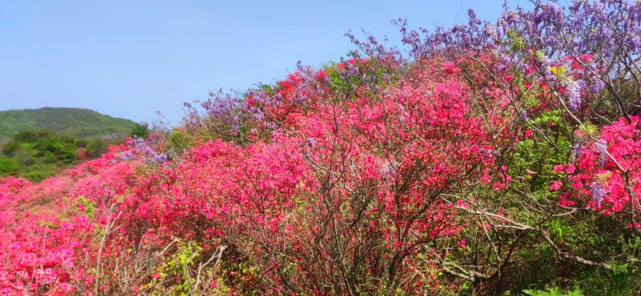每年四月山上的万亩杜鹃花和紫藤花绚丽绽放,让这里成了花的海洋,徒步穿行其中,心旷神怡,美不胜收!
