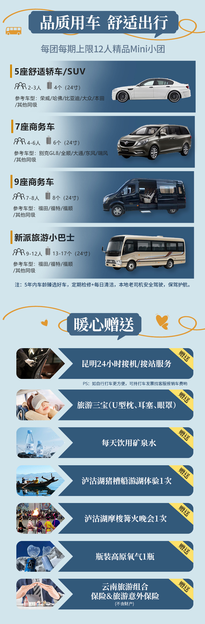 ▷集合/解散地点:昆明集合、丽江解散(机场/动车24H免费接送)