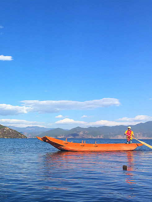 随后前往泸沽湖码头乘摩梭人特有的独木舟【猪槽船】游湖。此时你身在湖中央,蓝天白云下、清晨的阳光在清澈的湖水照映下显得格外美丽动人;每年11月至次年3月,各种珍贵成群的候鸟在蓝天白云下自由飞翔,此情此景形成一幅美丽动人的画面,美得足以招魂摄梦。