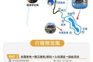 交通:不包含各地到达丽江集散的往返大交通费用(如:机票和高铁火车票等,提前预定通常折扣都会很低);