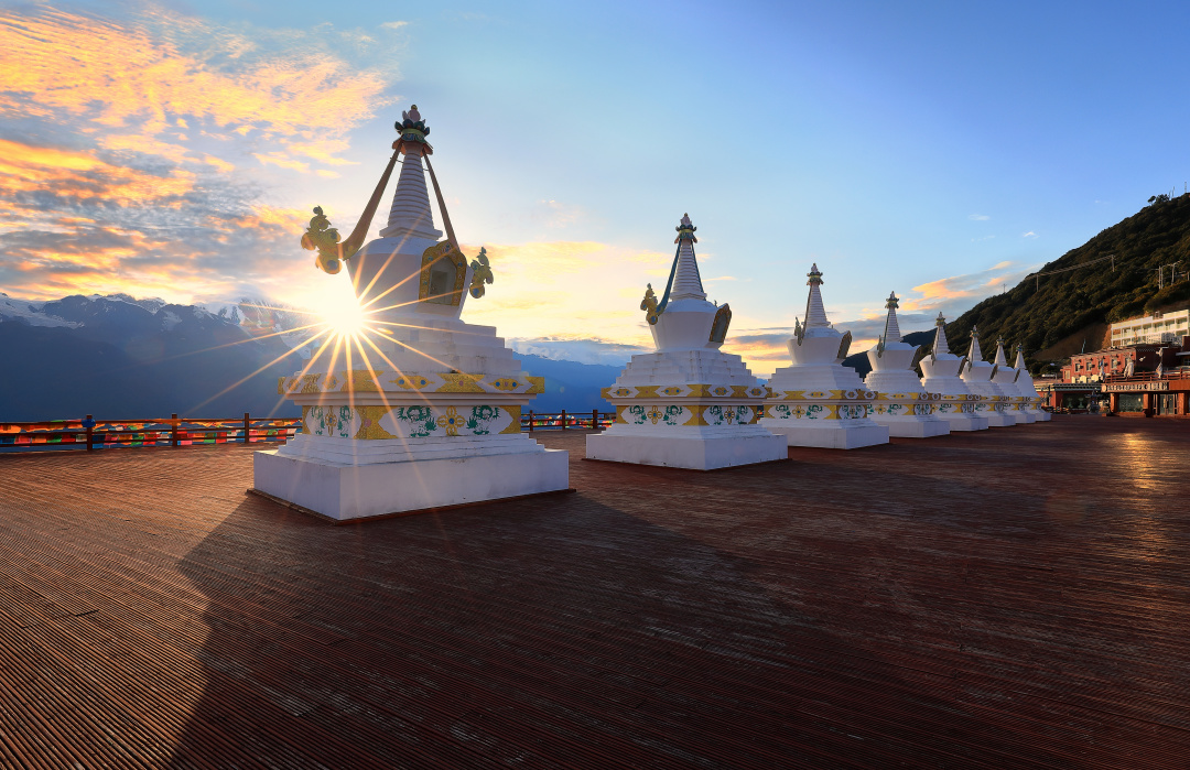 早餐后出发前往松赞林寺景区我们乘坐景区环保车到达拉姆央措湖,徒步转湖后进入松赞林寺参观游览。其建筑建于公元 1679 年, 噶丹•松赞林寺也称“云南第一寺”是云南省规模最大的藏传佛教寺院,在整个藏区都有着举足轻重的地位。因其外观布局酷似布达拉宫,所以又有“小布达拉宫”之称。 随后我们沿214国道途经尼西后和奔子栏镇,我们中餐可以在尼西或奔子栏镇享用。午餐后沿滇藏线214国道进入梅里雪山国家公园的金沙江月亮湾,金沙江遭遇了一座浑圆的金字塔型山峰,金色的江水于是绕着山峰流出了一个标准的“倒Ω”形,这就是很多摄影作品中的金沙江大拐弯;游览完月亮湾后进入白茫雪山腹地,穿越隧道经德钦县城约傍晚抵达飞来寺入住酒店。