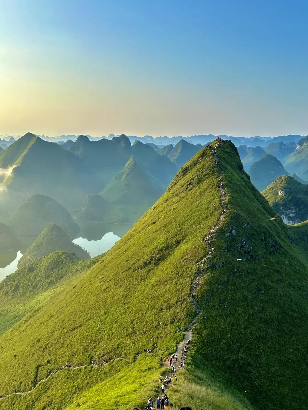 早餐后出发,坐车1小时到达浩坤湖徒步起点,今天徒步网红浩坤湖环线,12公里,爬升500米,徒步6小时左右。中午也是路餐干粮。这里也是广西山水经典的徒步景色