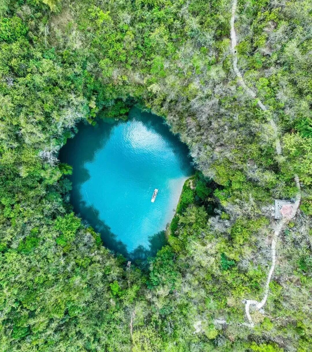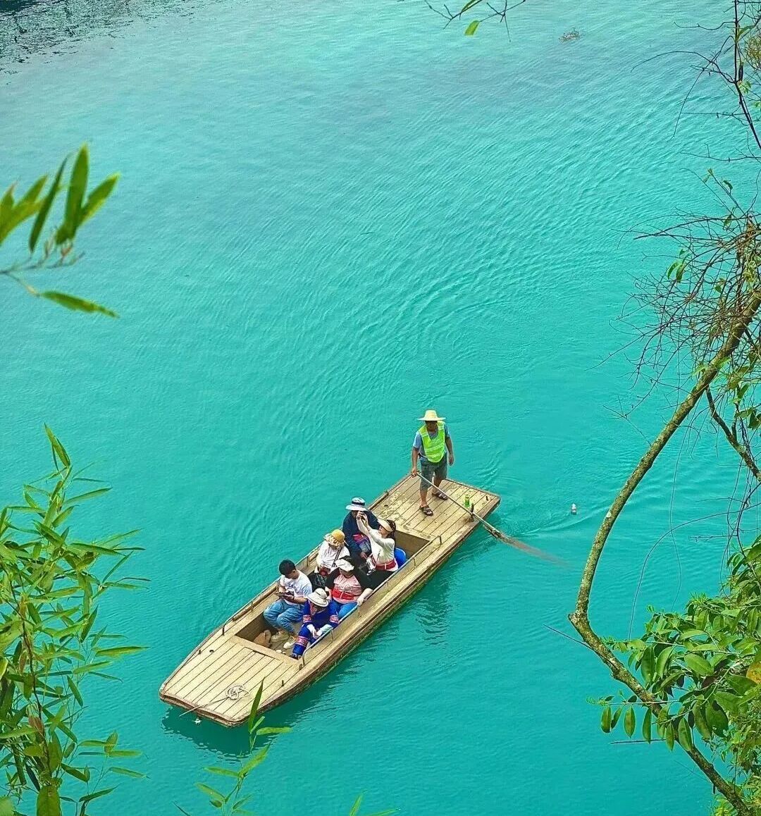三门海由7个岩溶天窗,是串珠式天窗群,目前只有三个天窗由自然通道可乘船入内,加上蓝得像海的水使人感觉到山中有海、海上有门,“三门海”也因此而得名,这里是梦幻蓝色秘境。
