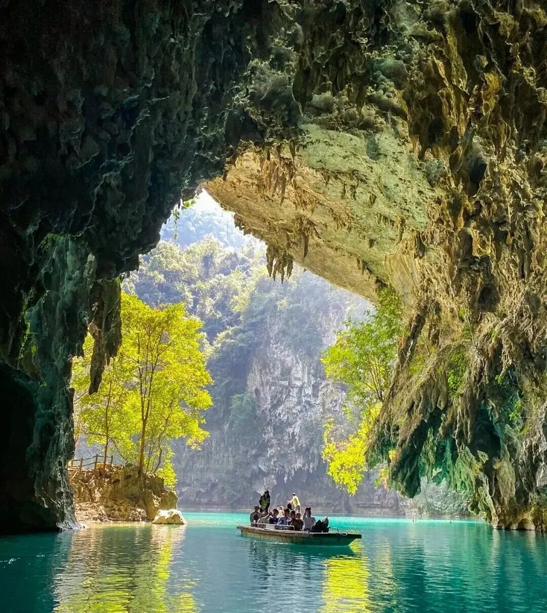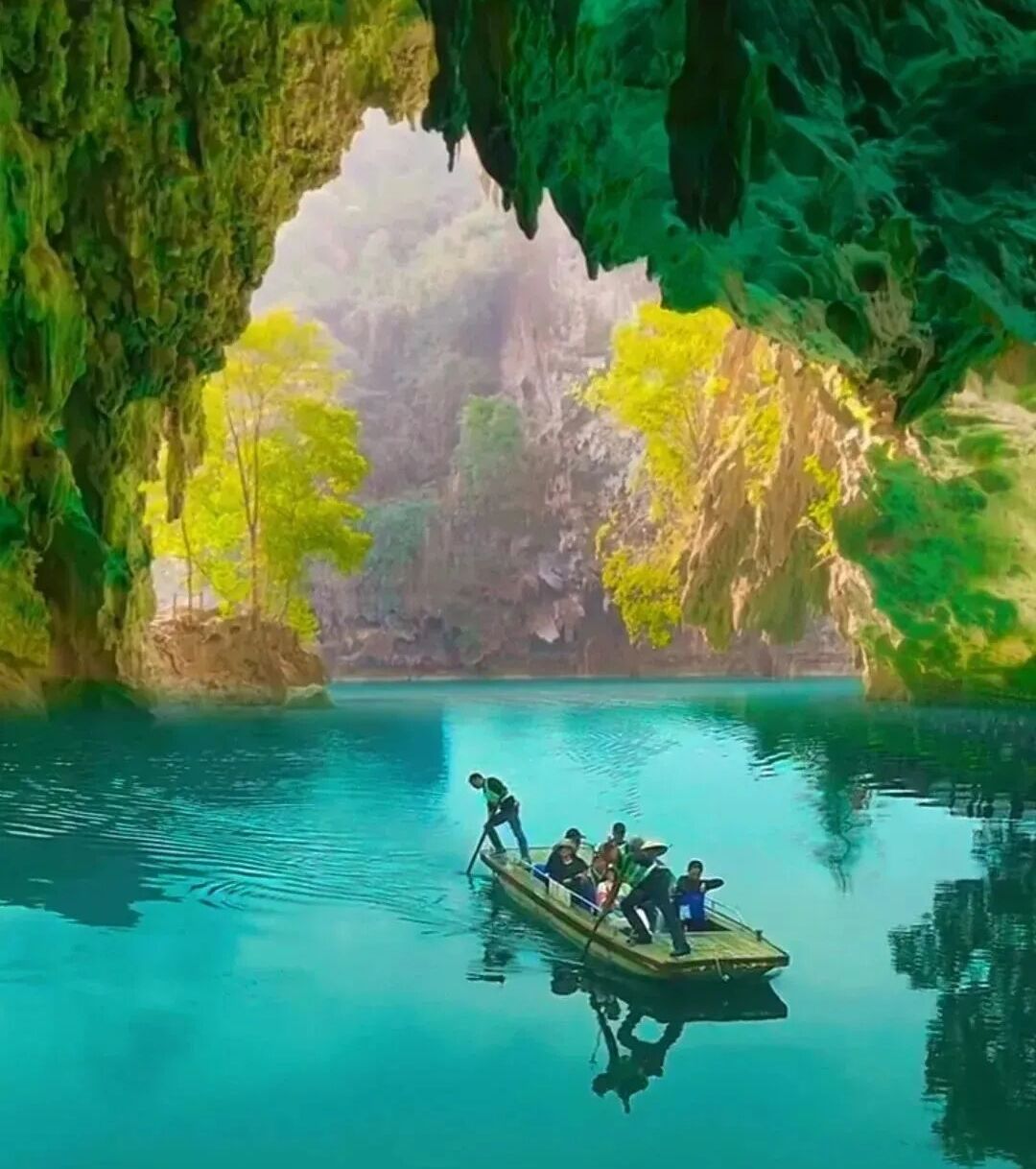 到达陶渊明笔下桃花源的入口,晶蓝清澈、奇骏艺术、神秘莫测,世间美景难以能比。