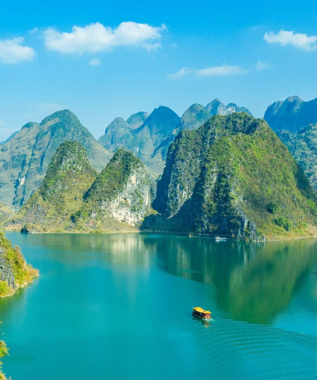 浩坤湖是凌云地区最大的一片水面,两岸山奇崖秀,丰水期里湖面宽阔,水质清澈。岛屿交错,水天一色。景区内还有几十座山峰紧紧夹携着一湖碧水,令人陶醉。