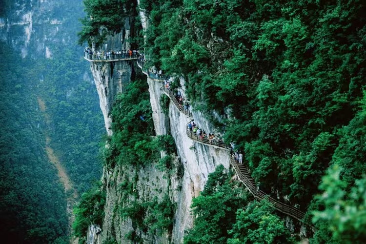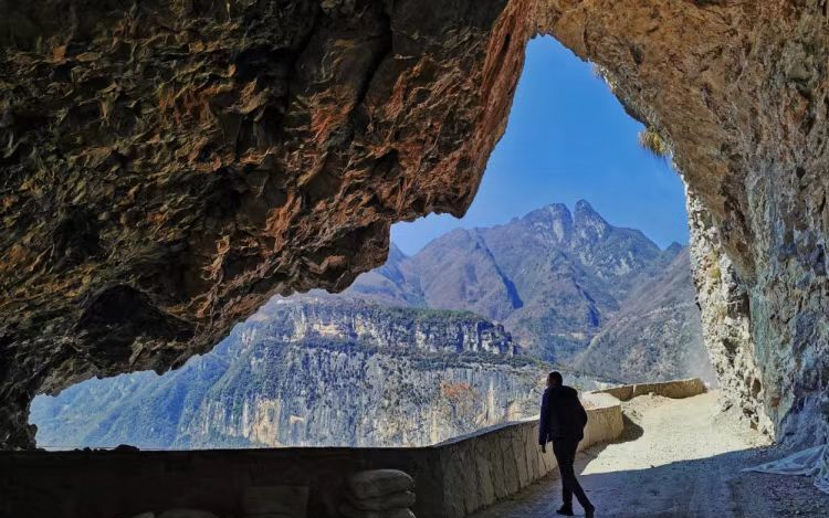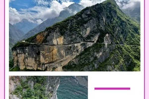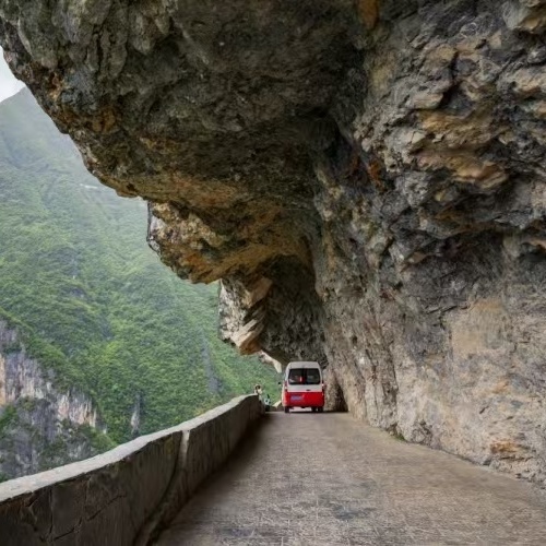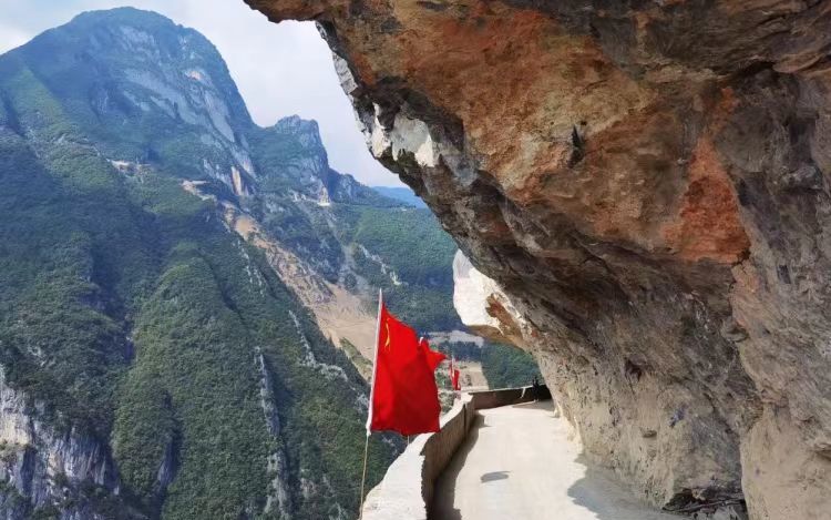 谷】,全长100余公里的峡谷,最窄处仅有13余米,但最深却有2400余米,谷内嶂谷、隘谷呈串珠状分布,因崩塌作用所形成的山崩地裂奇观,构成一条世界上罕见的山水画廊。这里有一条“中国最美挂壁公路”。公路切挂峡谷东侧绝壁,宽度不足3米,一边紧贴陡崖,一边万丈深渊。这是当地村民耗时4年零3个