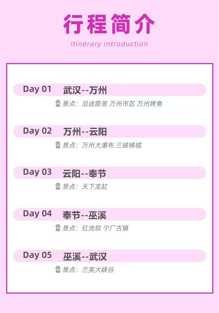 适时返回巫溪县,午饭后,一路高速回到武汉,结束此次愉快的渝东北之旅!车上大家可以交流旅行感触分享美景。