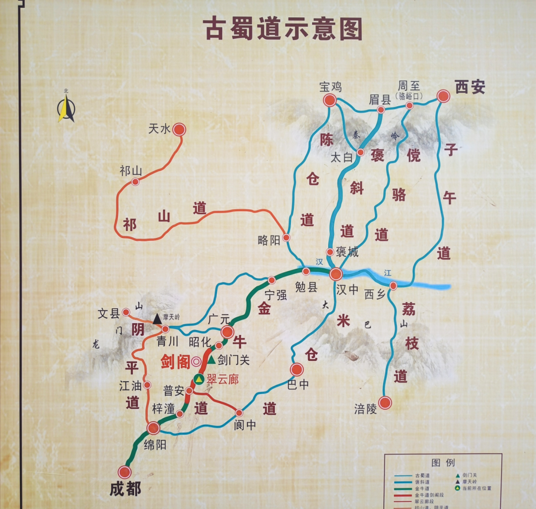 武汉—汉中—昭化古城 — 天雄关 —牛头山— 新铺 — 大朝驿 — 高庙铺 — 柏树湾 — 志公寺 — 剑门关 — 翠云廊 — 汉阳驿 — 抄手铺 — 剑阁古城 — 拦马墙 —武汉