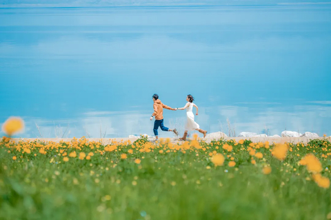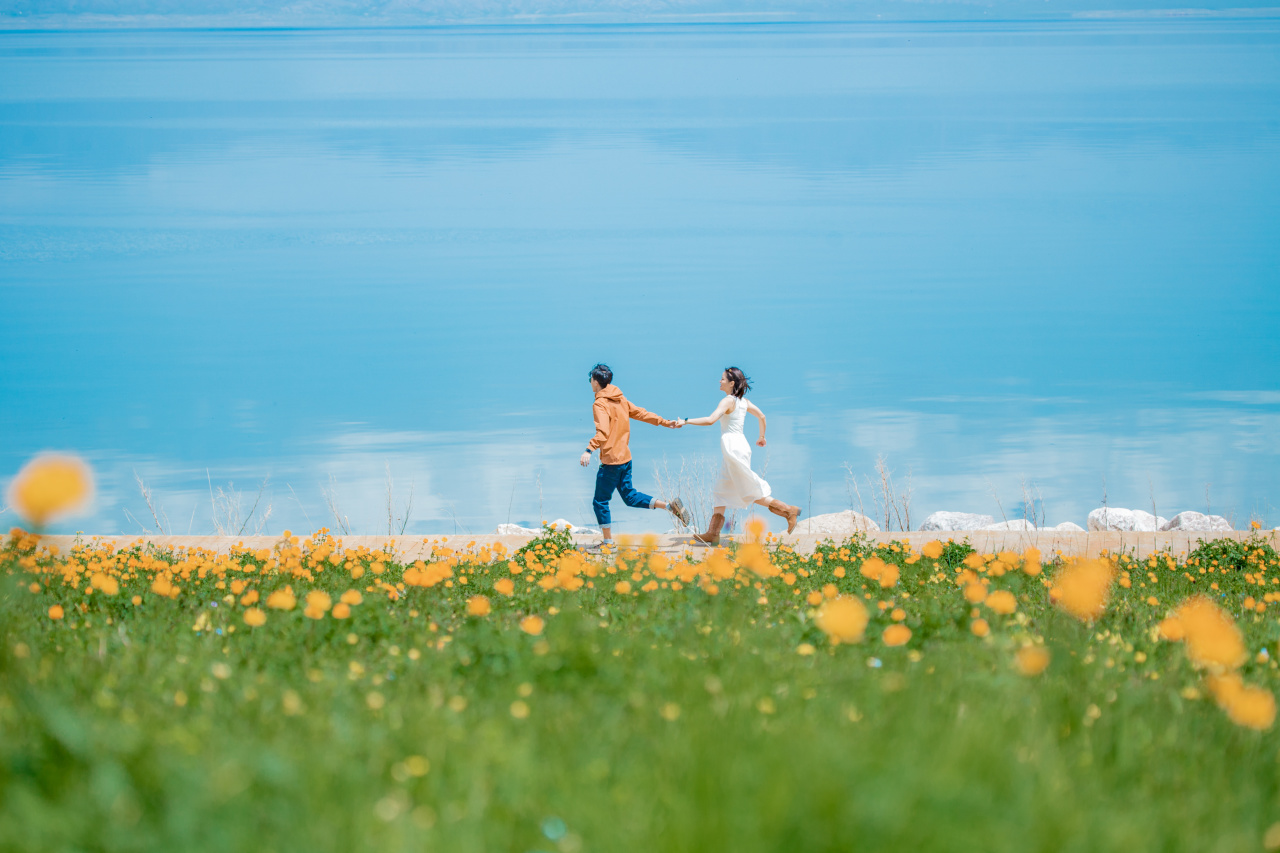 环湖途中运气好还能遇见白天鹅,正值花季的湖畔草甸嫩绿,金莲花、鸢尾花次第绽放,每一处都是拍摄风光大片的绝妙场地。