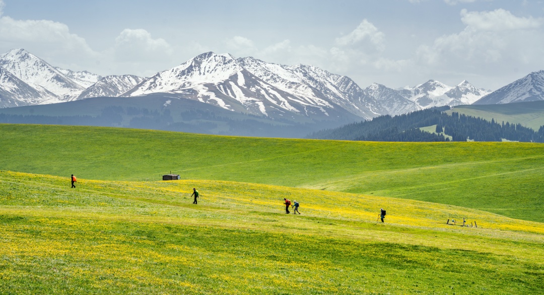 早餐后我们从伊宁启程,前往喀拉峻草原徒步。春夏的喀拉峻草原正是花季,漫山遍野的野花争相绽放,嫩绿色的草甸从脚下一直铺展到天边,徒步全程穿行于草原花海之中,每一步都仿佛踩在油画上。
