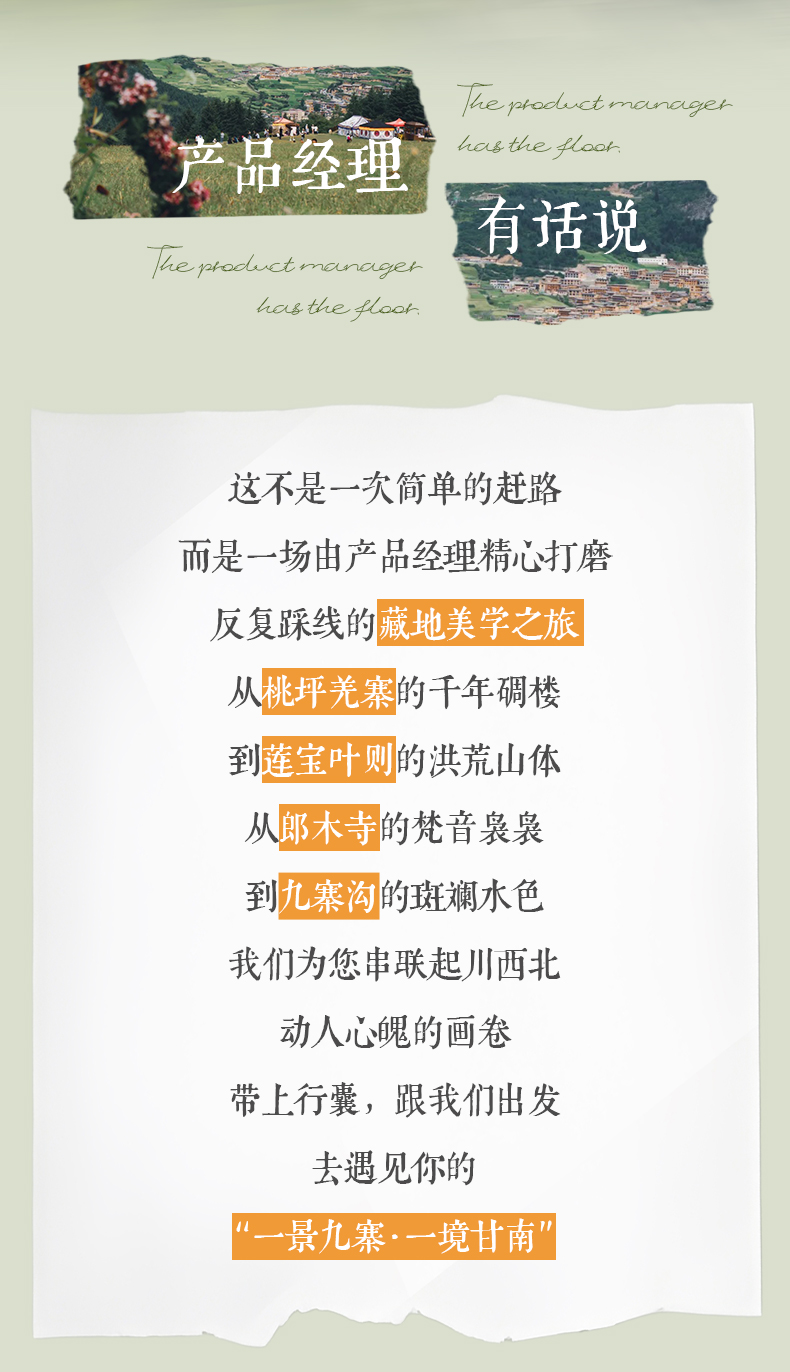 3、门票:各莫寺、莲宝叶则、九曲黄河第一湾、花湖、郎木寺、扎尕那、九寨沟、黄龙、纳摩大峡谷、景区的首道大门票。