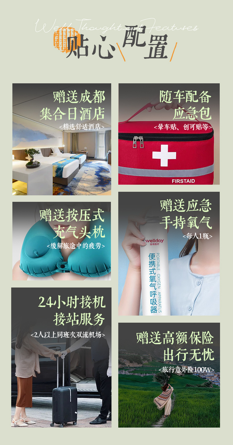 5、保险:赠送100万专业旅游意外保险;